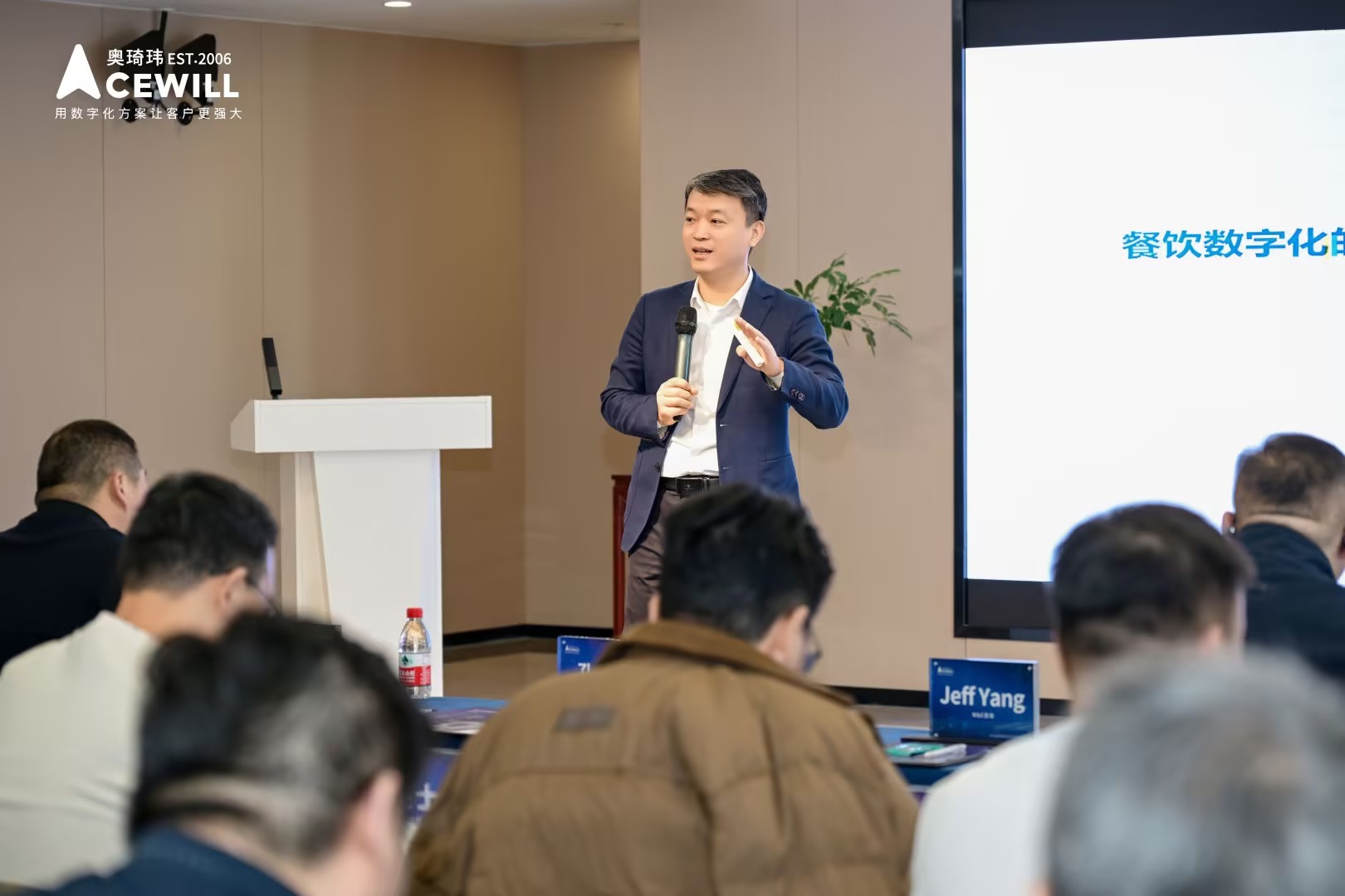 奥琦玮优秀合作伙伴张代泉先生分享了从工具销售到客户增长合伙人的成功转型路径。“我们开始深入理解餐饮行业的运营本质,重视与门店伙伴的合作,致力于提升其经营效率和盈利能力。”